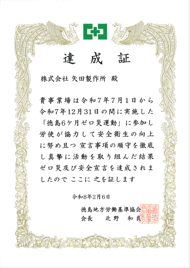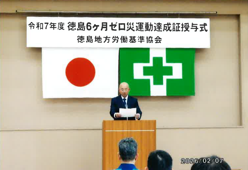 さて、徳島労基の3月号の「令和7年度徳島6ヶ月ゼロ災運動達成証授与式を実施」に社長が掲載されました。